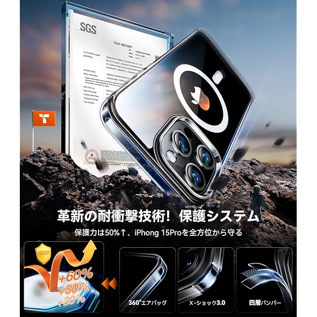 【落下の不安をゼロに!・MIL 規格対応】2024 年、TORRAS ラボが防摔テストをアップグレードし、新サイズの iPhone 16 pro max (用)により優れた保護を提供する。三大保護特許による強力なバリアで、どんな衝撃からもスマホを守る。この製品はあらゆる衝撃からスマホを確実に保護するために設計されており、さらに米国防総省の MIL 規格に合格し、業界最高の耐衝撃性を誇る。対応機種:iPhone 16 pro max 用 ケース