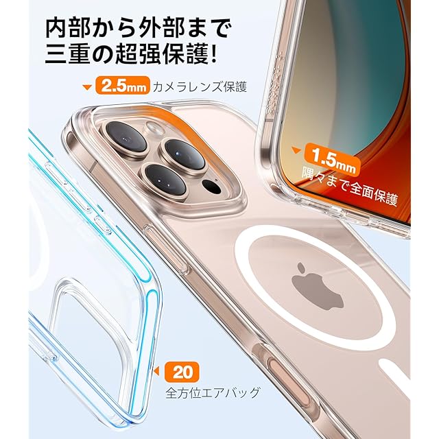 【本当!? 特許取得のマグネット!これが驚異の安定性!】軽く吸着し、瞬時に強力かつ精密にフィットする!TORRAS特許技術に基づく N52 マグネットは最適な配列で設計されており、他のケース磁石と比べて 40%も強い。ワイヤレス充電から車載ホルダーまで、幅広いMagSafe アクセサリーと簡単に互換性がある。どんな揺れにも強く、しっかり固定されるから、簡単には外れない!対応機種:iPhone 16 pro max 用 ケース