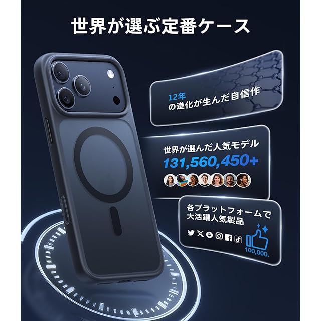 【世界中で大人気】TORRASは市場で最初にMagSafe対応ケースを発売したパイオニアです。このGuardian-Magは、MagSafe充電に最適化され、ケースを装着したままでも超高速で確実に充電可能です。現在、日本・アメリカ・ヨーロッパ・韓国などで大人気、累計販売台数は1,100万台を突破し、多くのユーザーに選ばれ続けています。対応機種:For iPhone 17 pro ケース