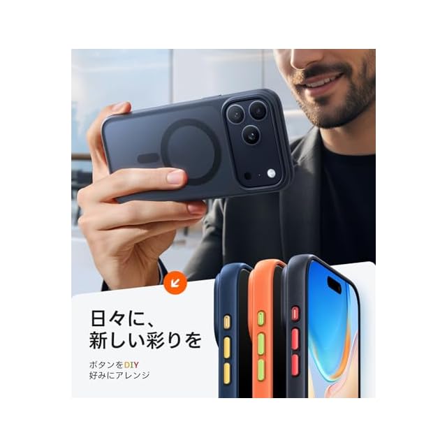 【撮影もカスタムも自由自在!カメラ保護ボタン】カメラコントロールボタンには4層素材を採用し、感度と保護性を両立。日常の撮影も安心で快適です。さらに、多色DIYボタンと下部のストラップホールで、気分やスタイルに合わせて自分だけのスマホケースをデザイン可能。対応機種:For iPhone 17 pro max ケース