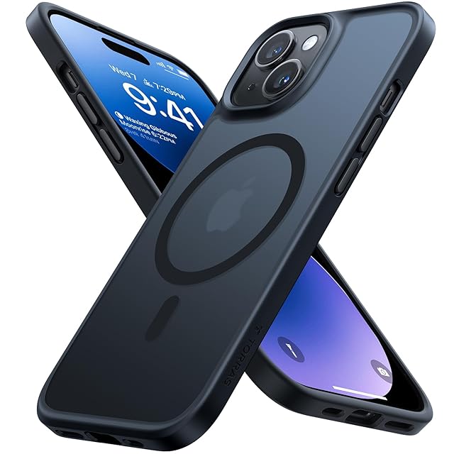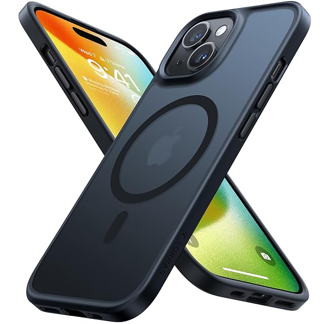 TORRAS iPhone 14/13 用 ケース【米軍進化耐久性・高精密 Magsafe対応】マグネット搭載 耐衝撃 ワイヤレス充電 半透明 マット 黄ばみなし ストラップホール付き マグセーフ対応 ブラック