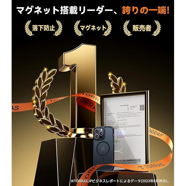 商品名:【米軍堅牢な耐落下性・高强力マグネット搭載】TORRAS iPhone 15 pro 用 ケース 半透明 マグネット搭載 耐衝撃 マット感 黄ばみなし ストラップホール付き ワイアレス充電対応 Guardian-Mag ブラック