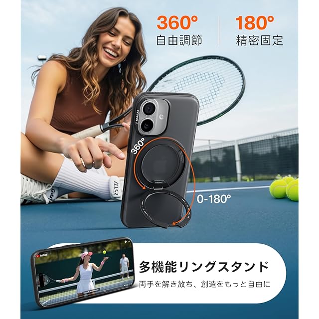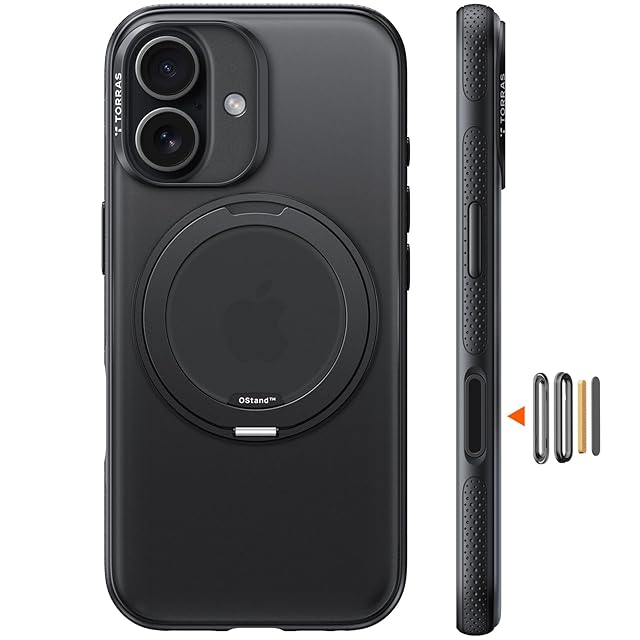 商品名:TORRAS iPhone 17 用ケース 【カチカチ・多機能360度回転スタンド】リング Ostand O3 Fitness MagSafe対応 米軍MIL規格耐衝撃 スタンド 指紋防止 黄変防止 カメラコントロールボタン付き ストラップホール 半透明 撮影/動画視聴/日常の記録 手のひらサイズの映像革命 ブラック