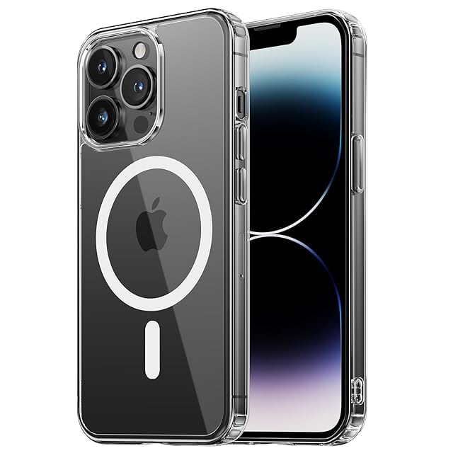 NIMASO iPhone14 pro 用 ケース MagSafe対応 クリア 軽量 PC 背面 黄変防止 耐衝撃 傷つけ防止 ケース マグネット搭載 マグセーフ対応 バンパー ワイヤレス充電対応 ストラップホール付き 携帯カバー アイフォン14プロ対応 (6.1インチ)氷星シリーズ クリア NSC24C1144