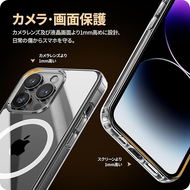 商品名:NIMASO iPhone14 pro 用 ケース MagSafe対応 クリア 軽量 PC 背面 黄変防止 耐衝撃 傷つけ防止 ケース マグネット搭載 マグセーフ対応 バンパー ワイヤレス充電対応 ストラップホール付き 携帯カバー アイフォン14プロ対応 (6.1インチ)氷星シリーズ クリア NSC24C1144