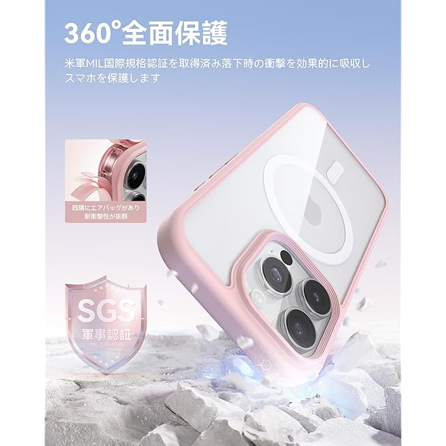 商品名:NIMASO iPhone 16 Pro Max 用 ケース MagSafe対応 黄変防止 マグネット搭載 マグセーフ対応 耐衝撃 米軍MIL規格 SGS認証 PC背面 いPhone 16 Pro Max対応 傷つけ防止 薄型 ワイヤレス充電対応 ストラップホール付き アイフォン16プロマックス対応(6.9インチ) スマホケース(氷星シリーズ)ピンク NSC24G1484
