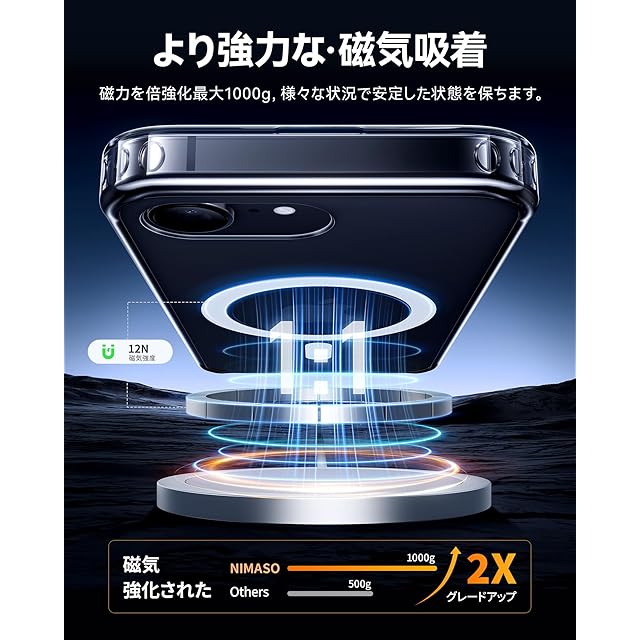 商品名:NIMASO iPhone 16e 用 ケース MagSafeアクセサリー用 クリア 黄変防止 耐衝撃 米軍MIL規格 SGS認証 PC背面 いPhone 16e 用 ケース 傷つけ防止 超薄型 軽量 ワイヤレス充電対応 アイフォン 16e用(6.1インチ) スマホケース クリア(氷星シリーズ) NSC24L1580