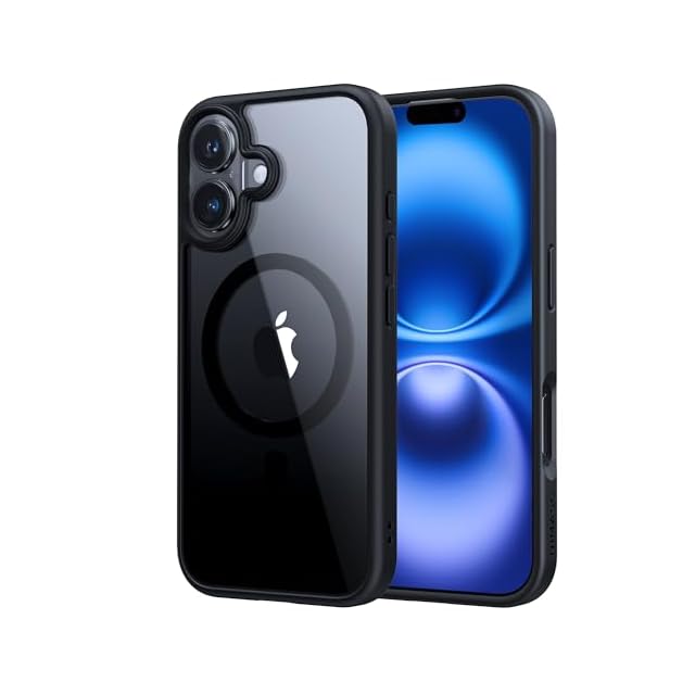 NIMASO iPhone 16 用 ケース MagSafe対応 黄変防止 マグネット搭載 マグセーフ対応 耐衝撃 米軍MIL規格 SGS認証 PC背面 いPhone 16 対応 傷つけ防止 薄型 ワイヤレス充電対応 ストラップホール付き アイフォン 16 対応(6.1インチ)スマホケース(氷星シリーズ)ブラック NSC24G1489