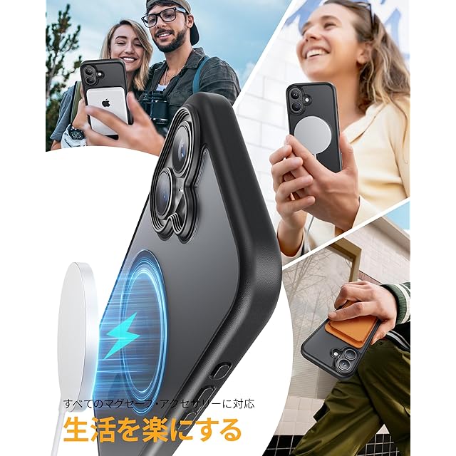 NIMASO iPhone 16 Plus 用 ケース MagSafe対応 スマホケース マグセーフ対応 カバー 滑り止め マット仕上げ いPhone 16 Plus 対応 全面保護 耐衝撃 米軍MIL規格取得 ワイヤレス充電 ストラップホール付き 携帯スマホケース アイフォン16プラス対応 (6.7インチ) ブラック (黒羽シリーズ)NSC24G1449