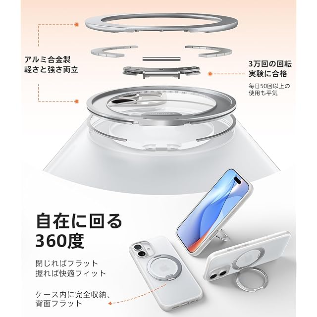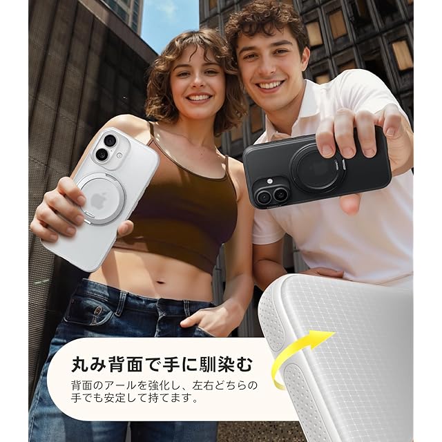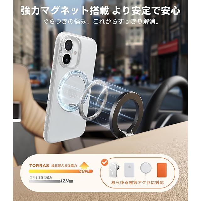 商品名:TORRAS iPhone 17 用ケース 【カチカチ・多機能360度回転スタンド】リング Ostand O3 Fitness MagSafe対応 米軍MIL規格耐衝撃 スタンド 指紋防止 黄変防止 カメラコントロールボタン付き ストラップホール 半透明 撮影/動画視聴/日常の記録 手のひらサイズの映像革命 ホワイト