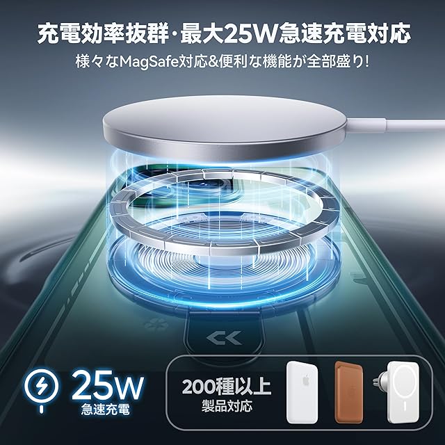 【超強磁力&最大25W高速充電対応】市販で装着するとワイヤレス充電できないとは異なり、弊社独自のHalbach配列磁界閉鎖技術により、端末への影響がなくスマホのワイヤレス充電機能に干渉がなく、最大25W高速ワイヤレス充電ができ、業界最強なN56磁石で吸着力は従来より20倍も高くなり、MagSafe対応の車載ホルダーに装着した状態で、悪路の走行中でも落下の心配もなく快適です!また両面式マグネットを採用しており、冷蔵庫、壁、キチンなど鉄ある所に、貼り付けたのまま動画視聴も可能です。対応機種:いphone16pro ケース