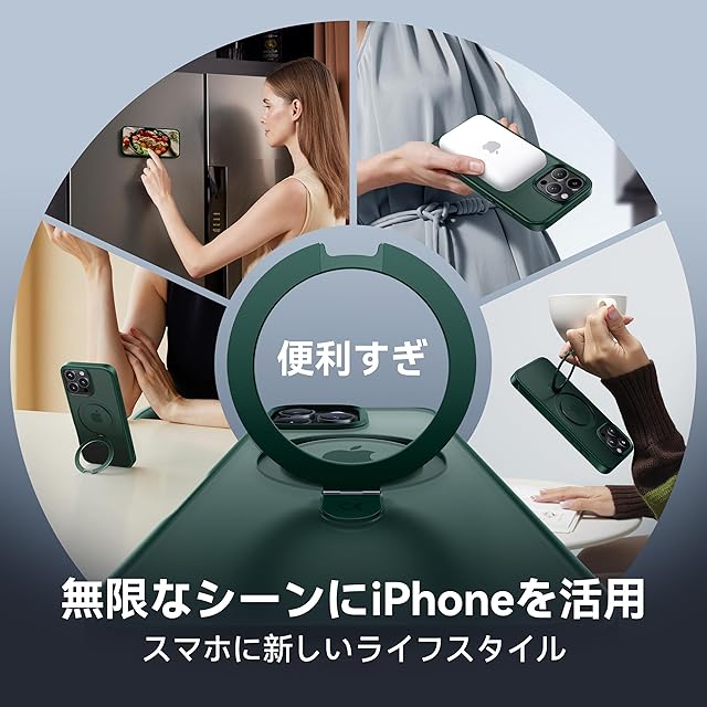 【スゴすぎる!多機能スタンド】弊社のMagicStandシリーズは、タテヨコどちらもOKのスタンド機能とリング機能とMagsafe充電対応も追加。品質、機能性、デザイン性の全てを高い基準で満たす、シーンや性別を選ばないケース。スタンドとして使用すると、画面が見やすい角度で固定でき、動画鑑賞やテレビ電話などが自然で快適に行えます。また高品質な材料と特許な技術が採用され、30,000回の開閉テストをクリアし、リングの部分緩みを一気に解消!従来品に比べて約10倍の長寿命化になり、圧倒的な耐久性と強度を実現されます。材質・形状・加工に徹底的にこだわり、スマホを快適に操作するように仕上げます。