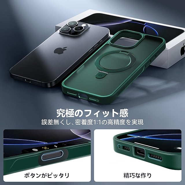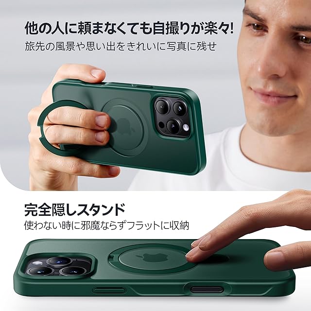 商品名:【8年間の技術結晶!4in1超万能モデル】CASEKOO iPhone 16 Pro 用 ケース 米軍MIL規格 横縦両立 指紋防止 マット仕上げ 最大25W急速充電対応 MagSafe対応 黄変防止 半透明 ストラップホール付き ワイヤレス充電対応 いphone16pro 用ケース 6.3インチ「MagicStand」(グリーン)