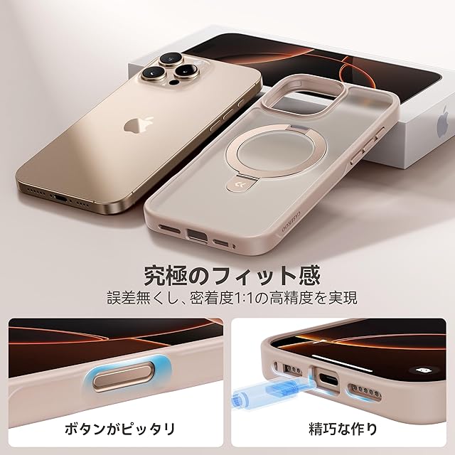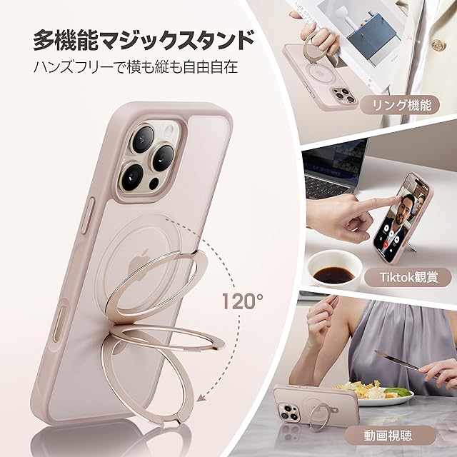 商品名:【8年間の技術結晶!4in1超万能モデル】CASEKOO iPhone16 Pro 用 ケース 米軍MIL規格 横縦両立 指紋防止 マット仕上げ 25W急速充電対応 MagSafe対応 黄変防止 半透明 スマホケース ストラップホール付き ワイヤレス充電対応 いphone16pro 用ケース 6.3インチ「MagicStand」(ゴールド)