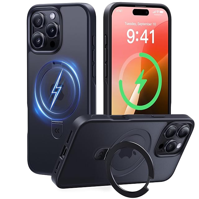 【8年間の技術結晶!4in1超万能モデル】CASEKOO iPhone 16 Pro Max 用 ケース 米軍MIL規格 横縦両立 指紋防止 マット仕上げ 最大25W充電対応 MagSafe対応 黄変防止 半透明 ストラップホール付き ワイヤレス充電対応 いphone16promax 用 ケース 6.9インチ「MagicStand」(ブラック)