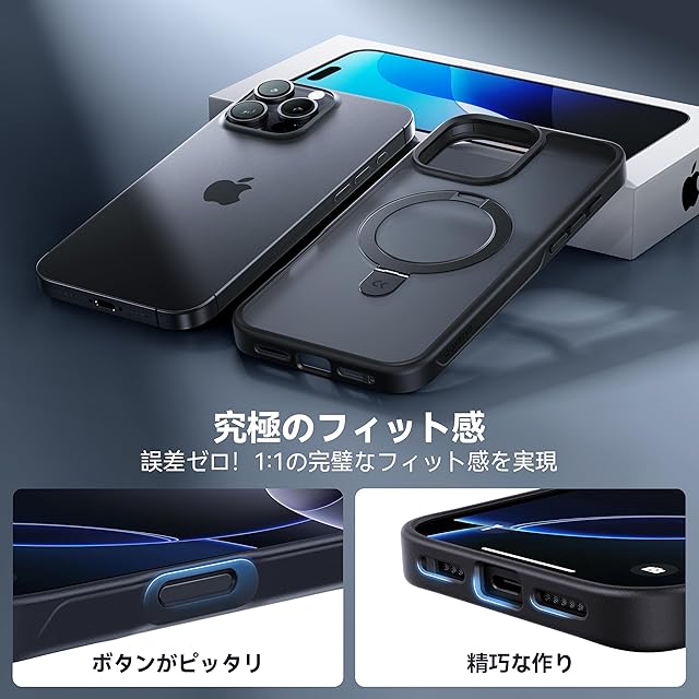 商品名:【8年間の技術結晶!4in1超万能モデル】CASEKOO iPhone 16 Pro Max 用 ケース 米軍MIL規格 横縦両立 指紋防止 マット仕上げ 最大25W充電対応 MagSafe対応 黄変防止 半透明 ストラップホール付き ワイヤレス充電対応 いphone16promax 用 ケース 6.9インチ「MagicStand」(ブラック)