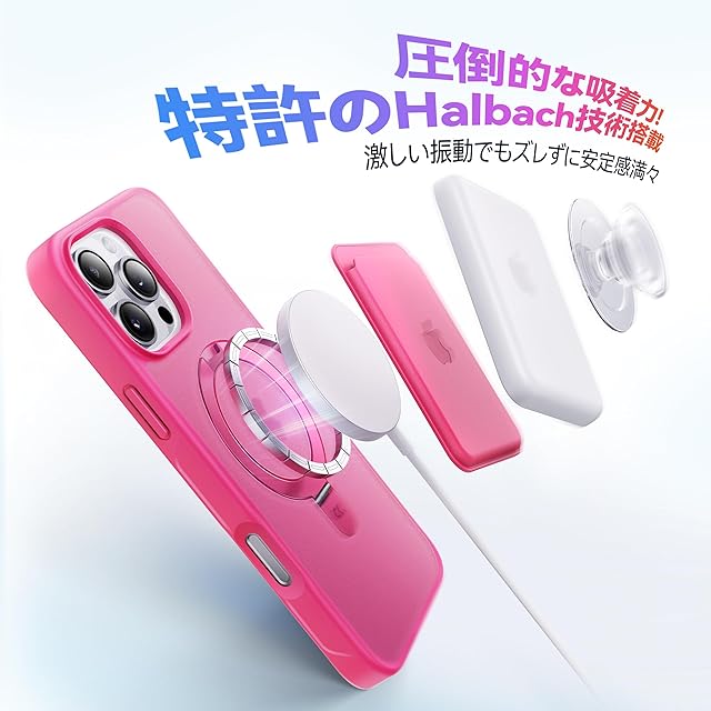 【超強磁力&最大25W高速充電対応】市販で装着するとワイヤレス充電できないとは異なり、弊社独自のHalbach配列磁界閉鎖技術により、端末への影響がなくスマホのワイヤレス充電機能に干渉がなく、最大25W高速ワイヤレス充電ができ、業界最強なN56磁石で吸着力は従来より20倍も高くなり、MagSafe対応の車載ホルダーに装着した状態で、悪路の走行中でも落下の心配もなく快適です!また両面式マグネットを採用しており、冷蔵庫、壁、キチンなど鉄ある所に、貼り付けたのまま動画視聴も可能です。対応機種:いPhone16promaxケース