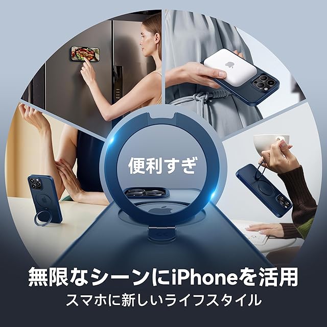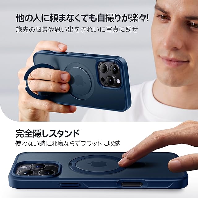【スゴすぎる!多機能スタンド】弊社のMagicStandシリーズは、タテヨコどちらもOKのスタンド機能とリング機能とMagsafe充電対応も追加。品質、機能性、デザイン性の全てを高い基準で満たす、シーンや性別を選ばないケース。スタンドとして使用すると、画面が見やすい角度で固定でき、動画鑑賞やテレビ電話などが自然で快適に行えます。また高品質な材料と特許な技術が採用され、30,000回の開閉テストをクリアし、リングの部分緩みを一気に解消!従来品に比べて約10倍の長寿命化になり、圧倒的な耐久性と強度を実現されます。材質・形状・加工に徹底的にこだわり、スマホを快適に操作するように仕上げます。