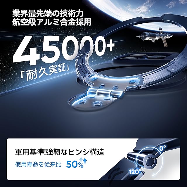 【スゴすぎる!多機能スタンド】MagicStandシリーズのケースは、横向き・縦向き両方で使用可能なスタンド機能を備え、MagSafe対応の無損充電にも対応しています。リング型デザイン、持ち運びも簡単です。スタンド機能は角度調整が自由にできるため、日常のドラマ視聴、動画閲覧、オンライン会議、セルフィー撮影など、さまざまなシーンに対応します。スタンドは強化ヒンジ構造と航空機用アルミ合金素材で設計されており、開閉はスムーズで変形や破損しにくく、45,000回以上の開閉テストでも安定性は変わりません。耐久性は従来のスタンドの約10倍。どんなシーンでもスマホをしっかり支え、日常生活で両手を完全に解放し、快適で便利な使い心地をお楽しみいただけます