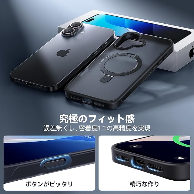 【高精度なカットアウト・指紋防止】精密機械測量で寸法を正確に図り、誤差無くし、密着度1:1の高精度を実現。各ボタンにピッタリあって、本体そのままの押し心地を実現し、ケースを装着したままスムーズに操作できます。また高精度のマット艶消し表面処理と防汚バイオニック技術を使用することで、指紋や油汚れなどの問題を徹底的に解決!いつでもサラサラでキレイな状態でをご使用頂けます。半透明なマット仕上げなので、スマホの美しいデザインとロゴも隠しません。またストラップホール付きで、紛失や落下も防ぐことができます。対応機種:アイフォン16 用ケース