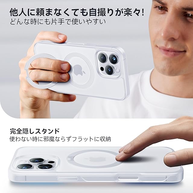 商品名:【8年間の技術結晶!4in1超万能モデル】CASEKOO iPhone 16 Pro Max 用 ケース 米軍MIL規格 横縦両立 指紋防止 マット仕上げ 最大25W急速充電対応 MagSafe対応 黄変防止 半透明 ストラップホール付き ワイヤレス充電対応 いphone16promax 用 ケース 6.9インチ「MagicStand」(マットクリア)