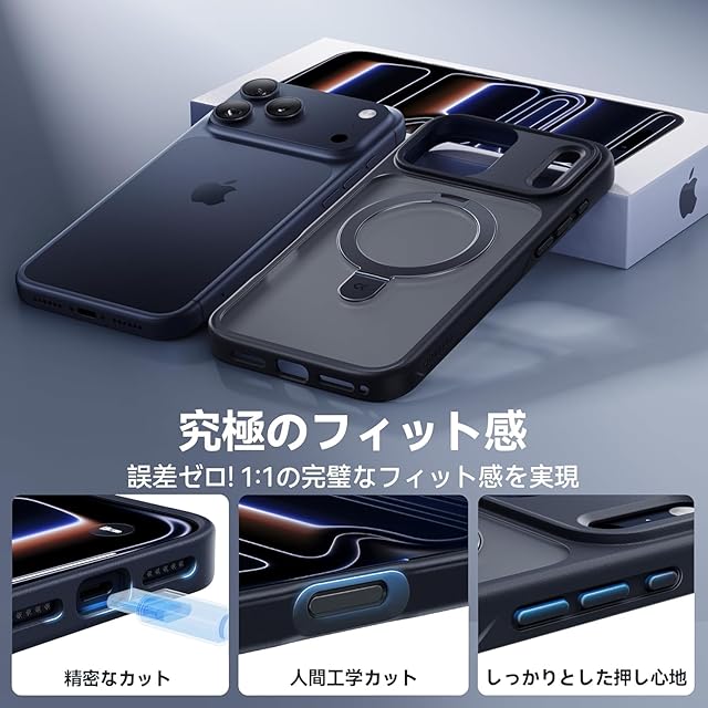商品名:【9年の匠心開発!4つの機能を一度に実現】CASEKOO for iPhone 17 pro Max ケース 米軍MIL規格 横縦両立 カメラモジュール強化保護 指紋防止 マット仕上げ 最大25W急速充電対応 MagSafe対応 黄変防止 半透明 ストラップホール付き ワイヤレス充電対応 特許設計「MagicStand」for いphone17promax ケース 6.9 (ブラック)