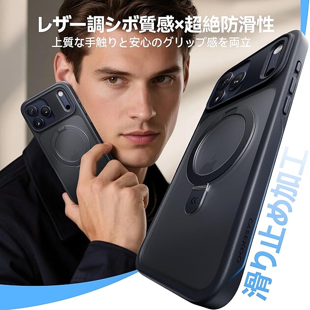 商品名:【9年の匠心開発!4つの機能を一度に実現】CASEKOO for iPhone 17 Pro ケース 米軍MIL規格 横縦両立 カメラモジュール強化保護 指紋防止 マット仕上げ 最大25W急速充電対応 MagSafe対応 黄変防止 半透明 ストラップホール付き ワイヤレス充電対応 特許設計「MagicStand」for いphone17pro ケース 6.3 (ブラック)