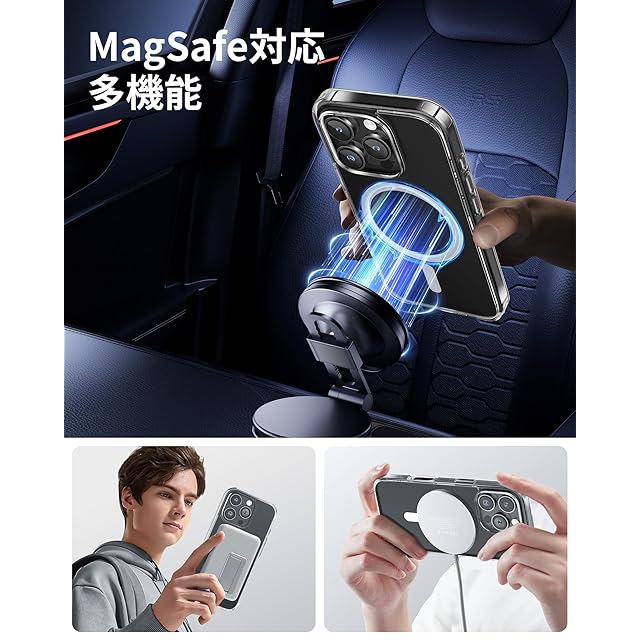 【MagSafe対応・強力な磁力吸着】スマホケース内部に38個の強力なN52マグネットを搭載しており、一瞬でピッタリと高速充電を実現!また、ワイヤレス充電やモバイルバッテリー・車載ホルダー・スタンド・リングなど全てのMagSafe対応アクセサリーにもばっちり対応しています。