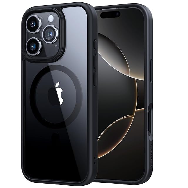 NIMASO iPhone 16 Pro 用 ケース MagSafe対応 黄変防止 マグネット搭載 マグセーフ対応 耐衝撃 米軍MIL規格 SGS認証 PC背面 いPhone 16 Pro対応 傷つけ防止 薄型 ワイヤレス充電対応 ストラップホール付き アイフォン 16 プロ 対応(6.3インチ) スマホケース(氷星シリーズ)ブラック NSC24G1487