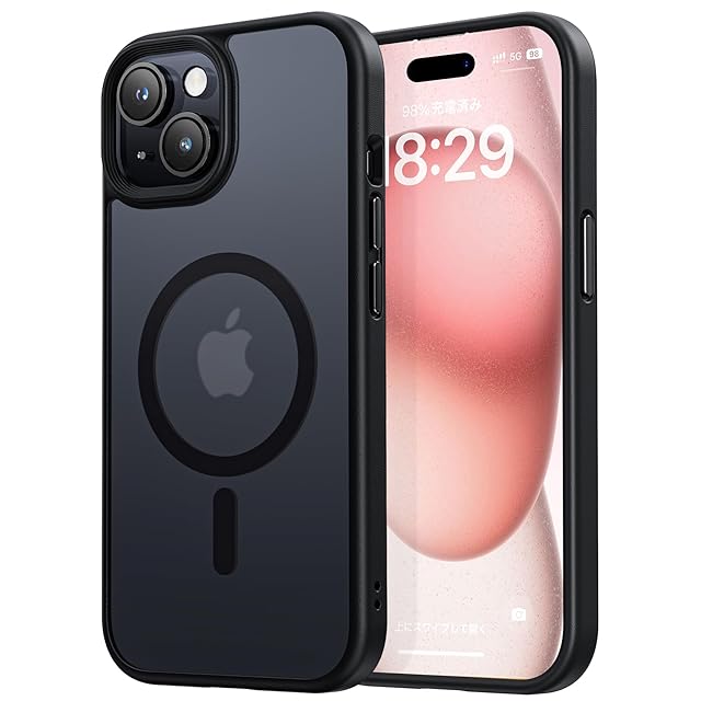 商品名:NIMASO iPhone15用 ケース MagSafe マグネット搭載 マグセーフ対応 カバー 滑り止め マット仕上げ 全面保護 耐衝撃 米軍MIL規格取得 いphone15 ケース magsafe ワイヤレス充電 ストラップホール付き アイフォン15対応(6.1インチ) スマホケース ブラック (黒羽シリーズ) NSC23H719