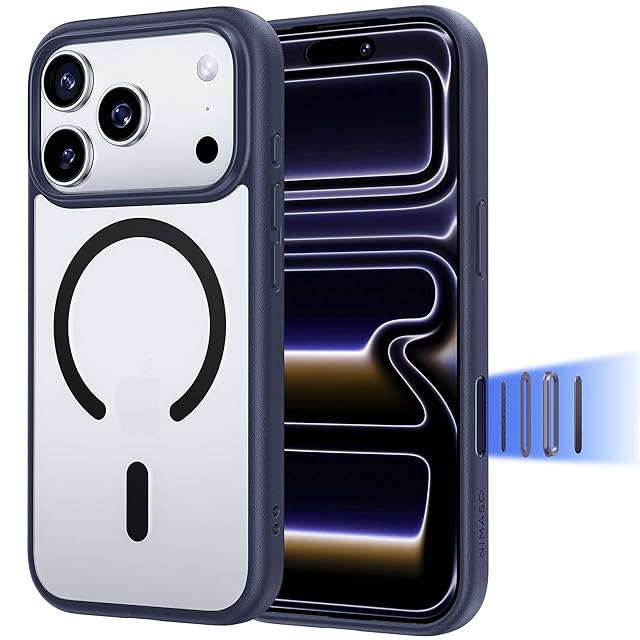 NIMASO iPhone 17 Pro 用 ケース MagSafeアクセサリー対応 スマホケース マグセーフ カバー 滑り止め マット仕上げ 全面保護 いPhone17Pro用 耐衝撃 米軍MIL規格取得 ワイヤレス充電 カメラコントロールカバー ストラップホール付き 携帯スマホケース アイフォン17プロ対応 (6.3インチ) ブルー (黒羽シリーズ) NSC25G1879