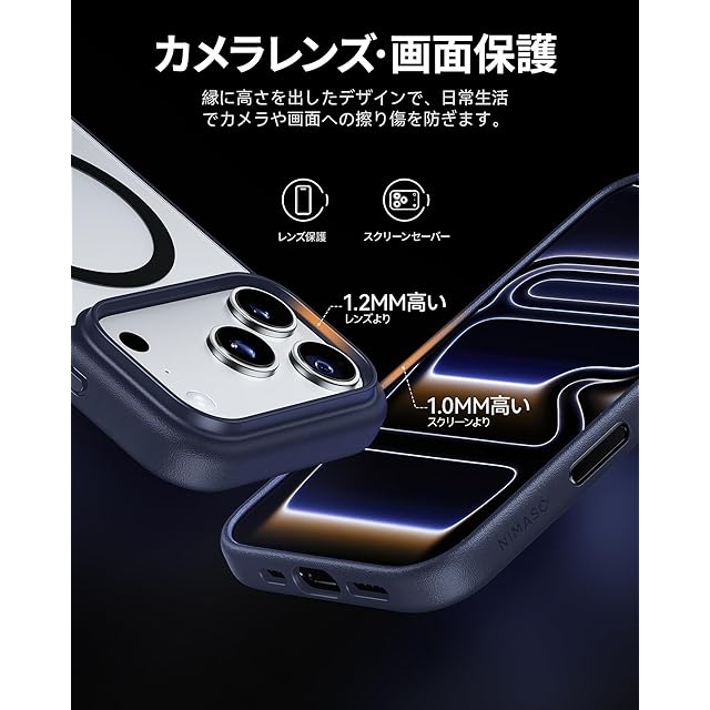 商品名:NIMASO iPhone 17 Pro 用 ケース MagSafeアクセサリー対応 スマホケース マグセーフ カバー 滑り止め マット仕上げ 全面保護 いPhone17Pro用 耐衝撃 米軍MIL規格取得 ワイヤレス充電 カメラコントロールカバー ストラップホール付き 携帯スマホケース アイフォン17プロ対応 (6.3インチ) ブルー (黒羽シリーズ) NSC25G1879