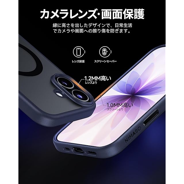 商品名:NIMASO iPhone 17 用 ケース MagSafeアクセサリー対応 スマホケース マグセーフ カバー 滑り止め マット仕上げ 全面保護 いPhone17用 耐衝撃 米軍MIL規格取得 ワイヤレス充電 カメラコントロールカバー ストラップホール付き 携帯スマホケース アイフォン17対応 (6.3インチ) ブルー (黒羽シリーズ) NSC25G1874