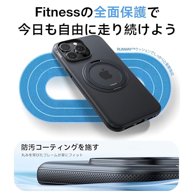 商品名:TORRAS iPhone 15 Pro 用 ケース【チクチク・多機能360度回転スタンド】 縦横両対応 マグネット搭載 MagSafe対応 米軍規格耐衝撃 リング 指紋防止 黄変防止 マグセーフ対応 レンズ保護 手持ち撮影 安定性 三眼 6.1インチ「Ostand R Fitness」ブラック