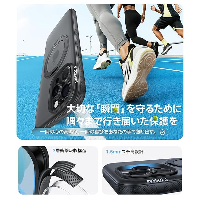 【エアバッグ搭載・強耐衝撃】 内側には縞状RUNWAYエアバッグが搭載、優れた保護性を発揮!ランウェイをイメージしたエアクッションで iPhone 15 Proを包み込みます。1.5mmの高さのベゼルが、スケートショットや山道での転倒時に画面とレンズをコンクリートの衝撃から保護し、4 つのコーナーの強化部分が専門的に衝撃を吸収します。ジムの床から砂利道まで 4000 回以上の落下テストをクリアし、高品質の保護素材により耐久性が実現されています。(iPhone 15 Pro専用)