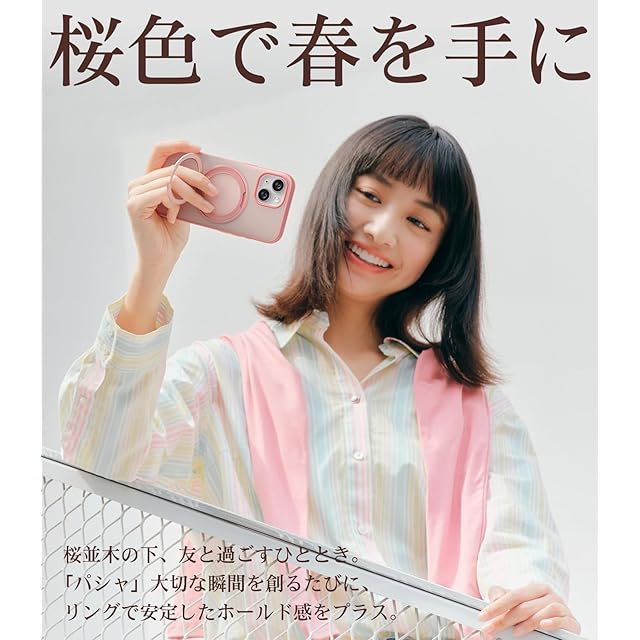 商品名:TORRAS iPhone 15 用 ケース 【初夏トキメキタイム・多機能360度回転スタンド】 縦横両対応 マグネット搭載 MagSafe対応 米軍MIL規格耐衝撃 リング 指紋防止 黄変防止 マグセーフ対応 レンズ保護 滑り止めドット模様 手持ち撮影 安定性 両眼 6.1インチ「Ostand R Fitness」(cherry blossom)