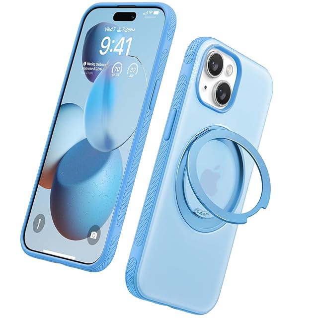 商品名:TORRAS iPhone 15 用 ケース【海色の癒し・多機能一体化360°回転スタンド】 縦横調整 マグネット搭載 MagSafe対応 米軍MIL規格耐衝撃 リング 指紋防止 黄変防止 マグセーフ対応 レンズ保護 滑り止めドット模様 手持ち撮影 安定性 両眼 6.1インチ「Ostand O3 Fitness」(powder blue)