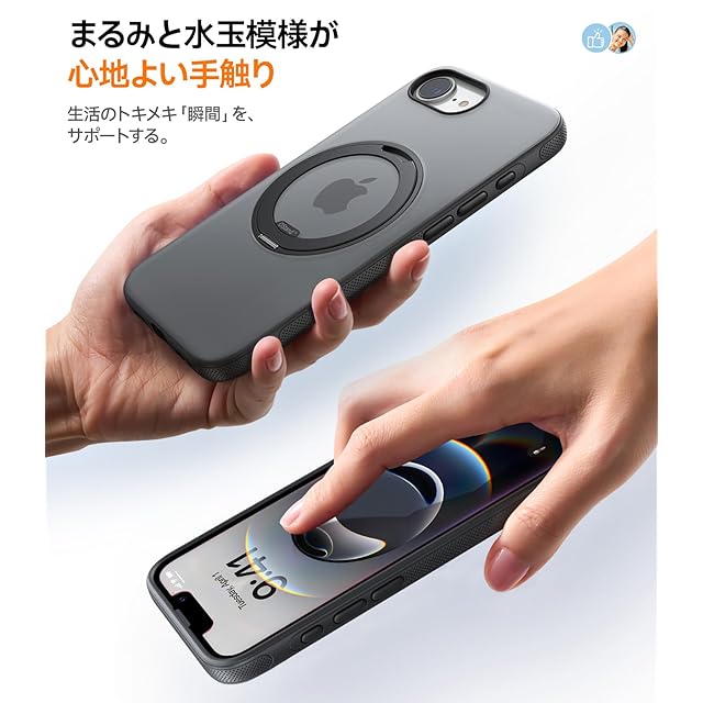 【360°回転・使用体験更なる高みへ】卓越した360°リングデザインで、従来の限界を打ち破り、iPhone 16eの使い心地を高めます。2025 年更新されたこの内蔵スタンドは、カチカチとした音が回転ごとに小さな達成感をもたらし、回転がストレス解消につながります。また、好みの角度にしっかり固定できるため、動画鑑賞時の快適さが大幅に向上します。動画鑑賞する際に、夢のような映像を楽しみながら、自宅に別の世界を創り出します。さらに、360リングスタンドがあれば、片手操作がスムーズになり、好きな場所に設置して自動撮影にも活用できます。外出先でのトキメキ瞬間を捉えるのにも便利で、出会ったあらゆる美しい瞬間を簡単に記録できます。