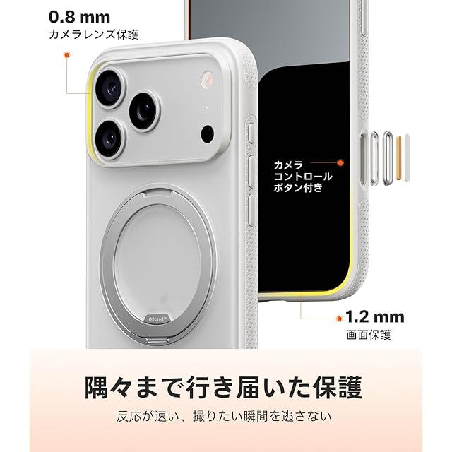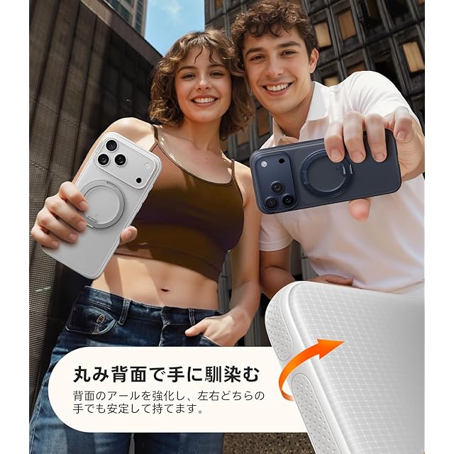 商品名:TORRAS iPhone 17 Pro 用ケース 【カチカチ・多機能360度回転スタンド】リング Ostand O3 Fitness MagSafe対応 米軍MIL規格耐衝撃 スタンド 指紋防止 黄変防止 カメラコントロールボタン付き ストラップホール 半透明 撮影/動画視聴/日常の記録 手のひらサイズの映像革命 ホワイト