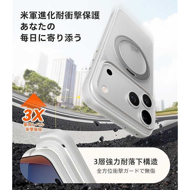 【驚異の磁力MAX!】36個の高性能N52磁石を採用し、純正MagSafeと同素材で作られています。さらに独自特許のHalbach Array技術により磁石の配置と磁力線の方向を最適化し、純正を超える吸着力を実現。スマホをしっかり固定するだけでなく、ワイヤレス充電効率も大幅アップします。対応機種:For iPhone 17 pro ケース
