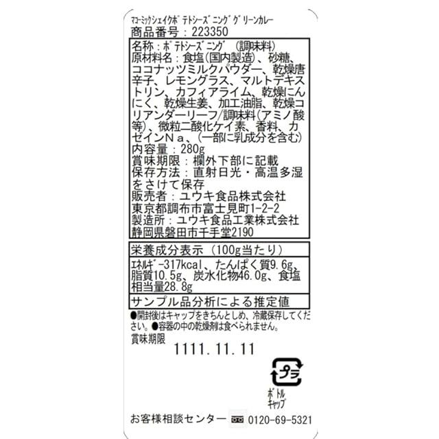 商品名:MC ポテトシーズニング グリーンカレー 280g(シャカシャカポテト)