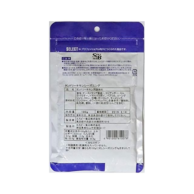 商品名:S&B セレクトタンドリーチキンシーズニング100g袋入り×2袋