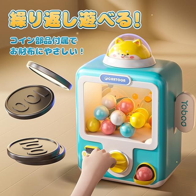 【簡単操作で繰り返し遊べる】コインを入れてハンドルを回すだけのシンプルな操作ですので、小さなお子様でも安心してお使いいただけます。中身を入れ替えることで、何度でも繰り返しご使用いただけます。