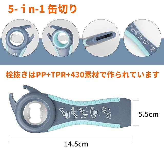 【絶妙なスーツ】5イン1 ボトルオープナー & 4イン1 ジャーオープナーセットジャーオープナーの組み合わせにより、さまざまな用途に使用できます。 様々なキッチン缶、ビール、ソーダなどの缶を開ける、キッチンジッパーバッグの密封などに最適。 必要なときはいつでも。