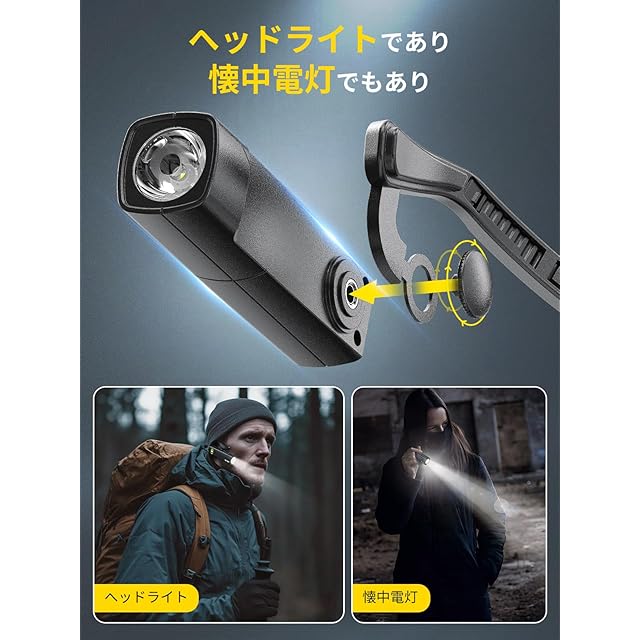 【一台多役・夜間の活動に最適】取付可能なヘッドバンドが付属しているので、懐中電灯としても使用可能です。キャンプ、ハイキング、釣り、DIYなどあらゆる夜間活動に最適な光を提供します