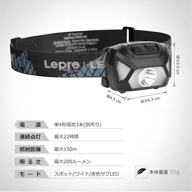 商品名:Lepro ヘッドライト 電池式 LED ヘッドランプ 2個セット 超高輝度 6種点灯モード ledヘッドライト 防水 軽量 キャンプ アウトドア ランニング 子供と大人向け