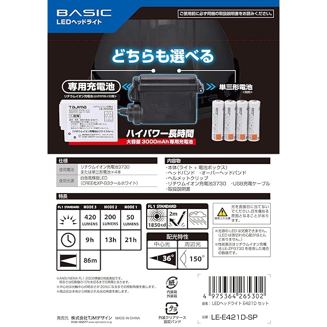 商品名:タジマ(Tajima) LEDヘッドライト E421D セット