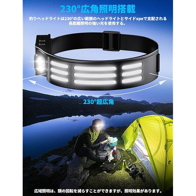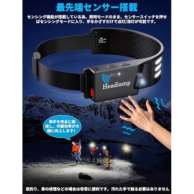 【手を振ることで作動するモーション】内蔵チップは、あなたの指示を感知して、いつでもオン・オフを切り替えることができ、両手を照明のために解放することができる。快適で調節可能なヘッドバンドが付属しているので、ヘッドランプを使えば、仕事、冒険、遊びに両手を自由に使える。