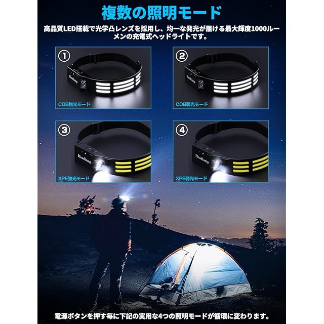 【安全性&2年間】また、1年間のメーカー付きますので、ご安心ください。パッケージ内容:ヘッドライト*1個、USB充電ケーブル*1個、取扱説明書。