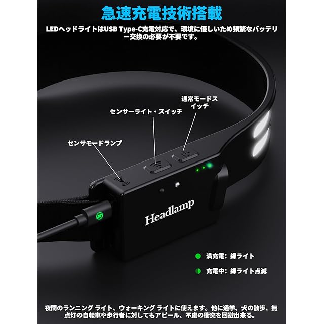 【安全性&2年間】また、2年間のメーカー付きますので、ご安心ください。パッケージ内容:ヘッドライト*1個、USB充電ケーブル*1個、取扱説明書。